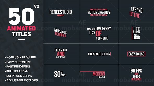 50个动画标题AE模板 2022-03-29 字幕条 326 推广 百度网盘立即下载提取码: Ct8w复制阿里云盘立即下载提取码: 6qEV复制城通网盘立即下载提取码: 9030复制注!免费通道中的分享链接无法保证永久有效。 当分享链接全部失效时可选择使用“专线下载通道”资源下载专线下载通道下载价格10 模版币立即购买常见问题:专线下载通道是什么?去水印版音频是什么?点击充值模版币?编号:3796软件:CC, CS6, CS5.5分辨率:1920x1080资源时长:3:00格式:After Effects Project Files大小:670kb更新时间:28/03/2022 原文链接:https://www.aemobanku.com/37063.html,转载请注明出处。 0 0 3d优雅公司动态可调节宣传干净开场白排版文字动画演示简介颜色
