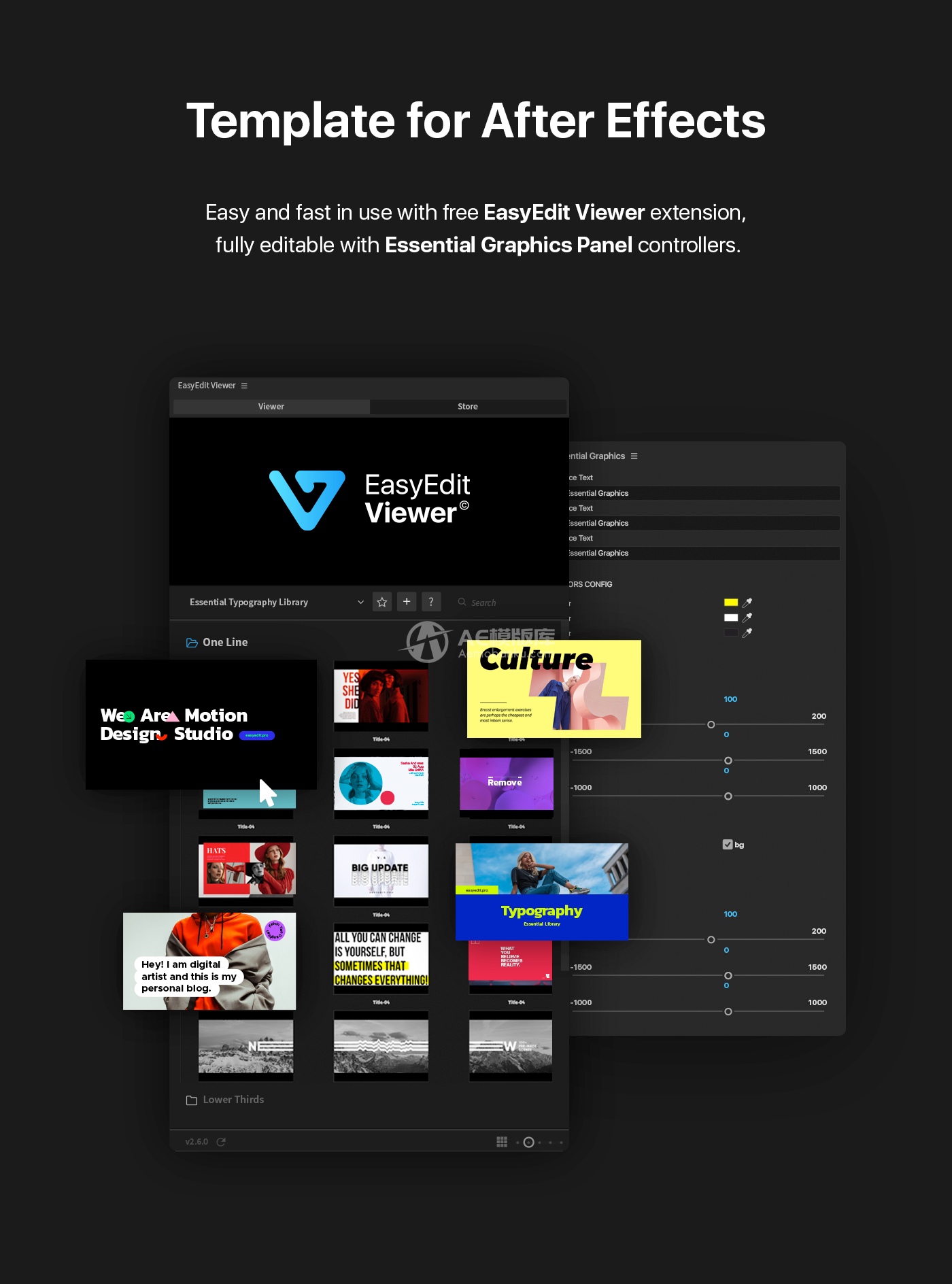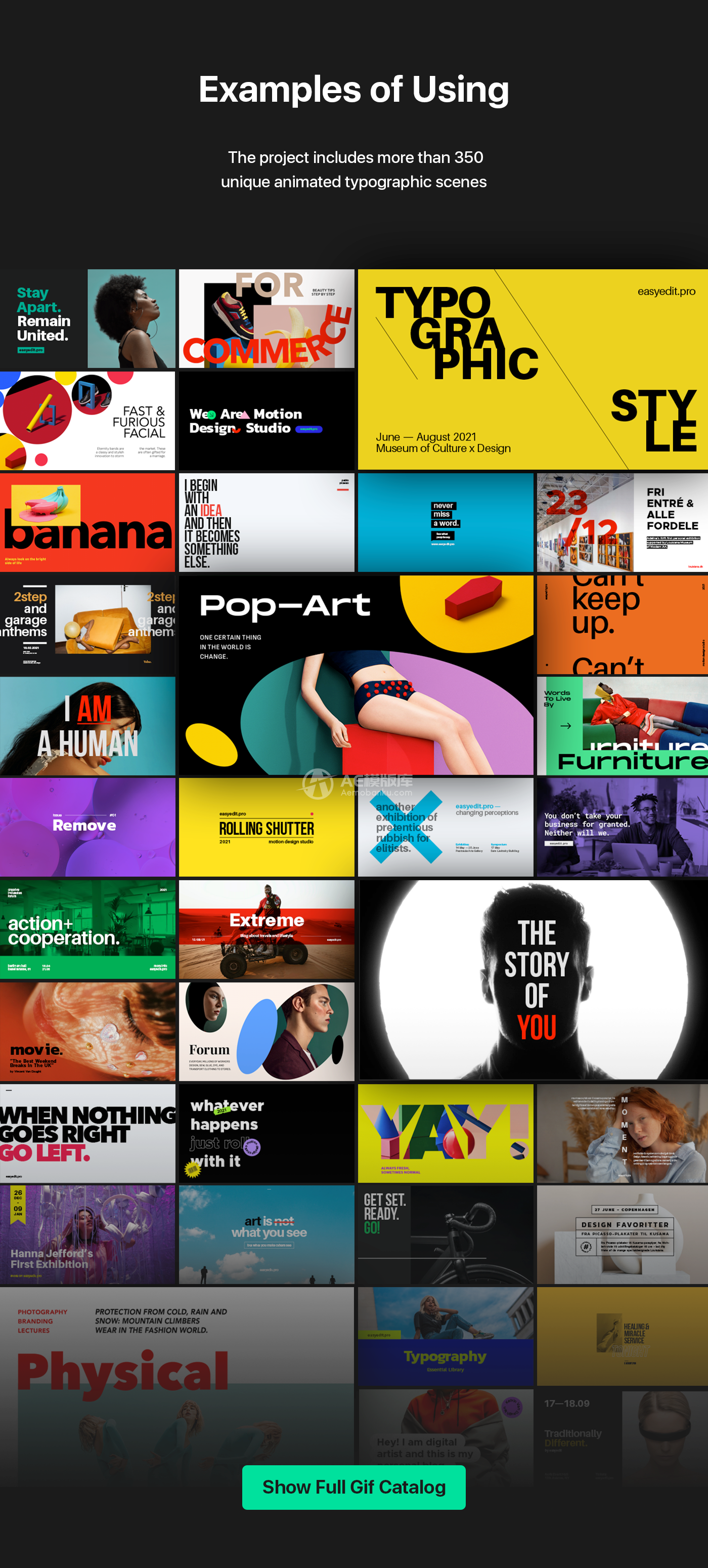 AE脚本-350组文字标题排版字幕条动画预设V6.1 破解版 2023-03-05 文字特效 443 推广 素材介绍 包含350组文字标题字幕排版动画,通过EasyEdit Pro脚本(已包含)来调用,可视化,需要哪个效果直接生成即可,十分简单,所有的文字,字体,颜色,大小等基本参数都可以修改 素材特点 版 本:AE CC 2018或者更高版本,支持中文版/英文版AE 分辨率:不限制 插 件:不需要第三方插件 大 小:514MB 教 程:视频教程 音 乐:不包含背景音乐 百度网盘立即下载提取码: m73q 复制夸克网盘立即下载提取码: 7iek复制注!免费通道中的分享链接无法保证永久有效。 当分享链接全部失效时可选择使用“专线下载通道”编号:21软件:AE CC 2018或者更高版本,支持中文版/英文版AE分辨率:不限制大小:479M更新时间:04/03/2023 原文链接:https://www.aemobanku.com/71314.html,转载请注明出处。 0 0 AE脚本字幕条动画文字标题